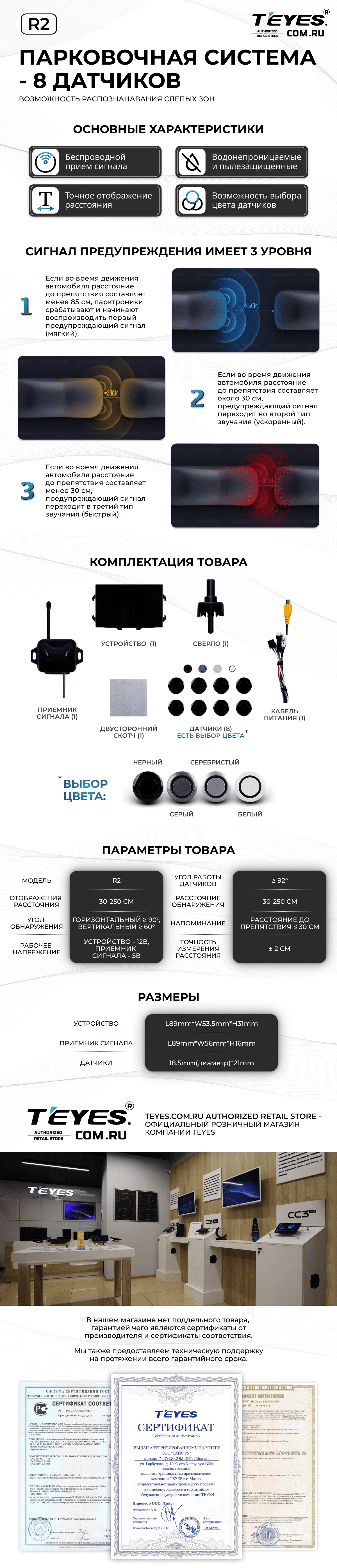 Передние и задние парктроники Teyes R2 для CC4 Pro / CC4 / CC4L / CC3 2K / CC3 / CC3L / CC2 Plus / SPRO Plus / TPRO2 / LUX ONE (Черные) 8-датчиков - купить всего за 21 900 руб. в интернет-магазине в Новокузнецке Teyes.com.ru. ✓ Самый лучший выбор мультимедиа ✓ Лучшая замена штатному ГУ ✓ Тел. +7 (800) 775-31-74