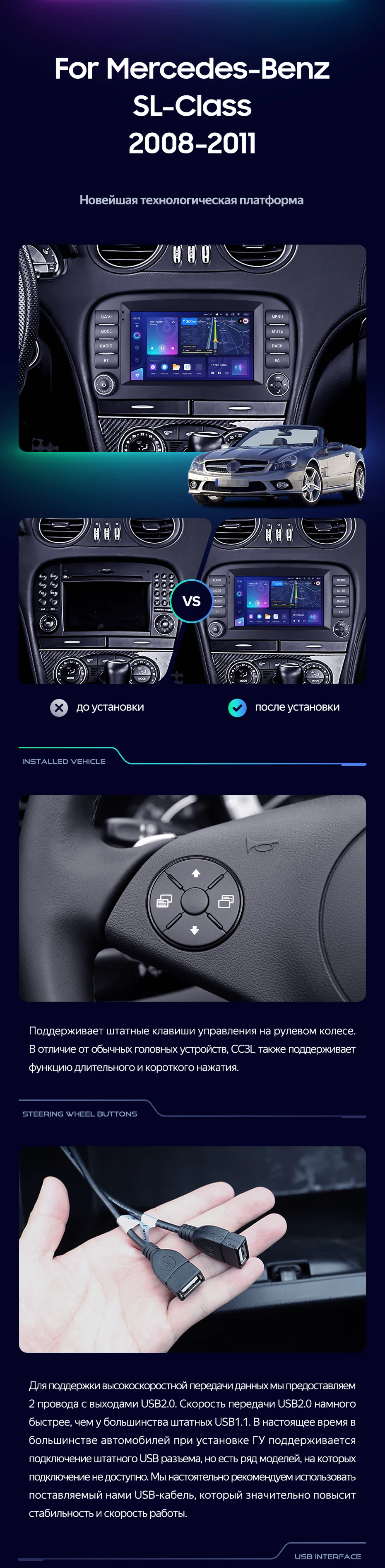 Переходная рамка Mercedes-Benz SL-Class R230 (2008-2011) (7") - купить всего за 7 000 руб. в интернет-магазине в Новокузнецке Teyes.com.ru. ✓ Самый лучший выбор мультимедиа ✓ Лучшая замена штатному ГУ ✓ Тел. +7 (800) 775-31-74