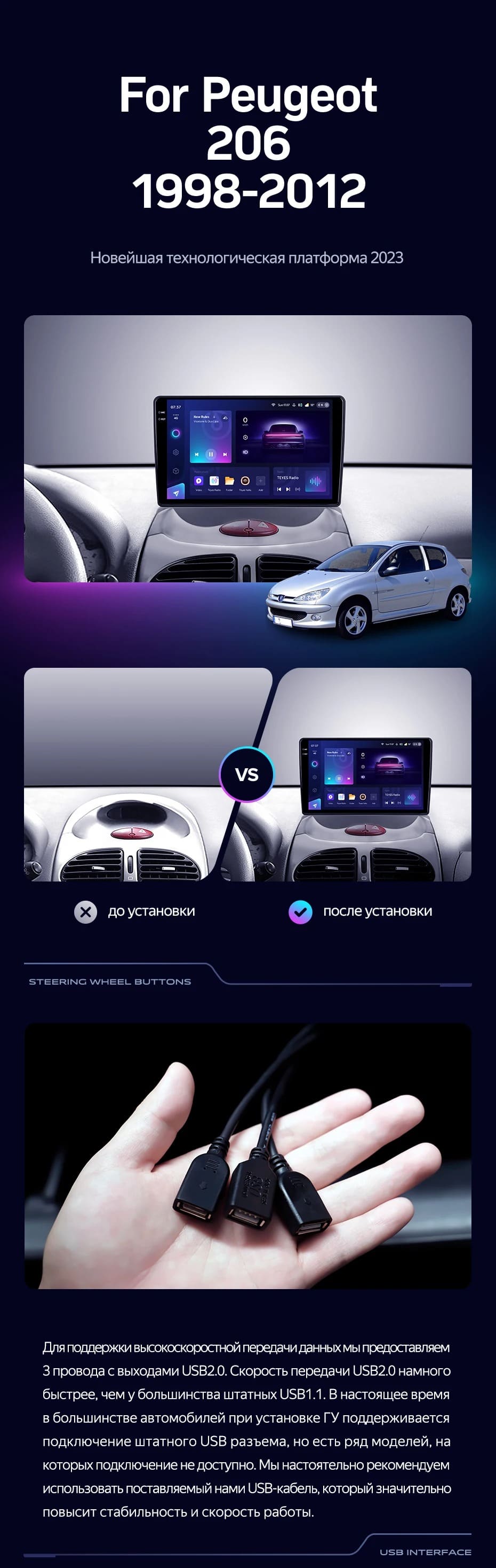 Переходная рамка Peugeot 206 T13 T16 T12 (1998-2012) (9") - купить всего за 5 600 руб. в интернет-магазине в Новокузнецке Teyes.com.ru. ✓ Самый лучший выбор мультимедиа ✓ Лучшая замена штатному ГУ ✓ Тел. +7 (800) 775-31-74