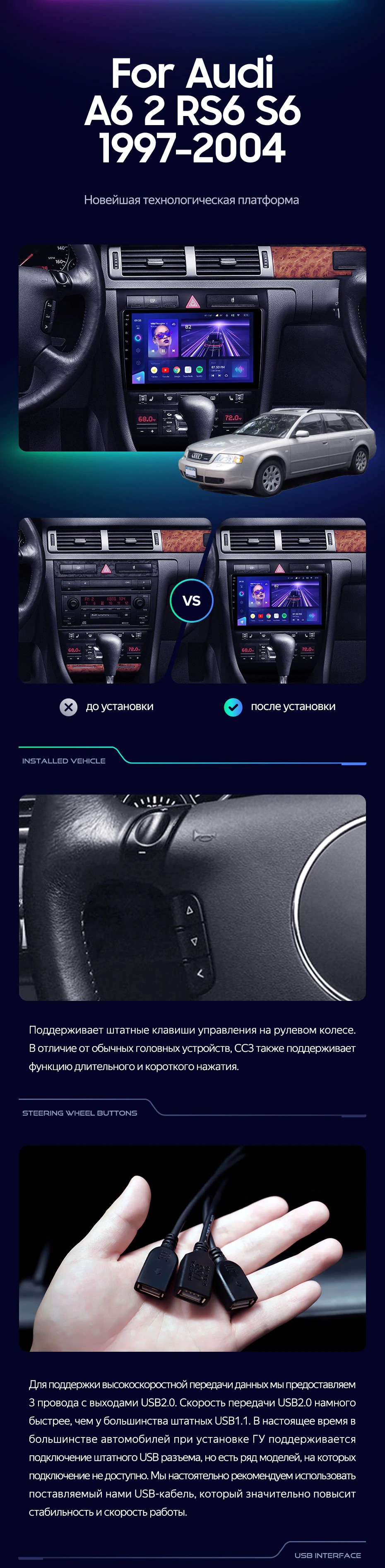 Штатная магнитола Teyes CC3 4/32 Audi A6 2 (1997-2004) - купить всего за 34 230 руб. в интернет-магазине в Новокузнецке Teyes.com.ru. ✓ Самый лучший выбор мультимедиа ✓ Лучшая замена штатному ГУ ✓ Тел. +7 (800) 775-31-74