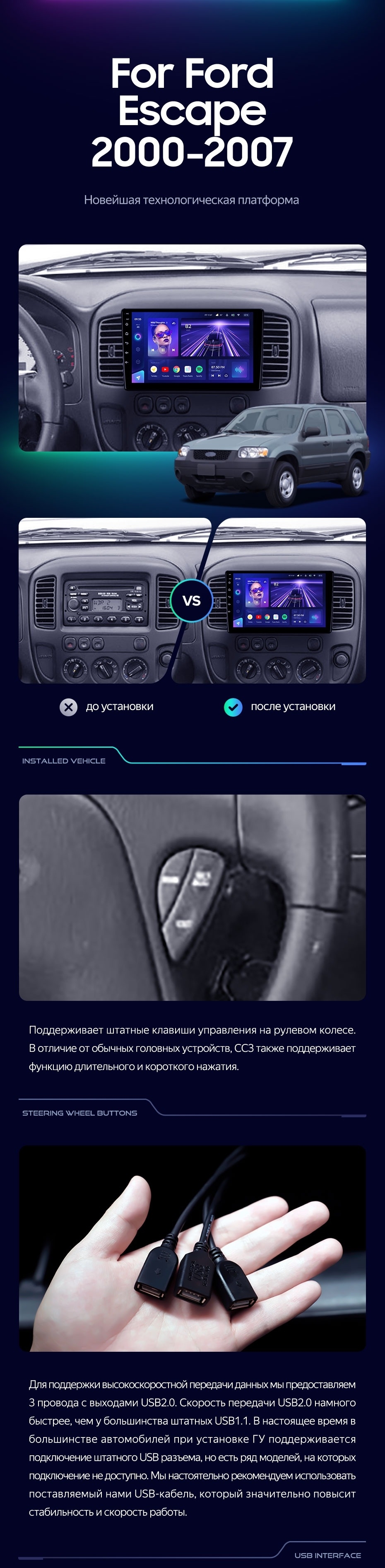 Штатная магнитола Teyes CC3 4/32 Ford Escape (2000-2007) - купить всего за 32 230 руб. в интернет-магазине в Новокузнецке Teyes.com.ru. ✓ Самый лучший выбор мультимедиа ✓ Лучшая замена штатному ГУ ✓ Тел. +7 (800) 775-31-74