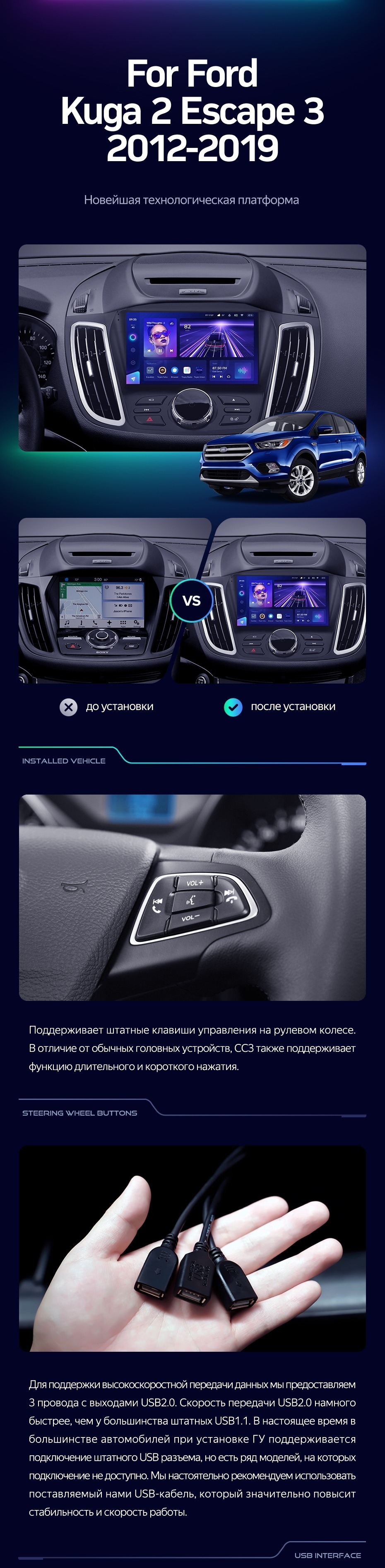 Штатная магнитола Teyes CC3 4/32 Ford Kuga 2 (2012-2019) Тип-B - купить всего за 36 030 руб. в интернет-магазине в Новокузнецке Teyes.com.ru. ✓ Самый лучший выбор мультимедиа ✓ Лучшая замена штатному ГУ ✓ Тел. +7 (800) 775-31-74