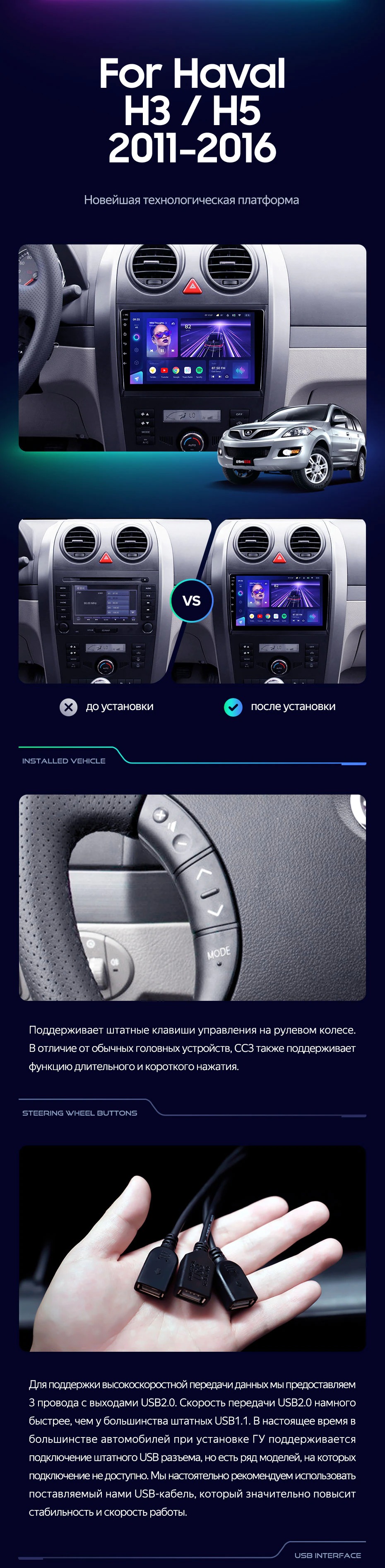 Штатная магнитола Teyes CC3 4/32 Great Wall Hover H3 H5 (2011-2016) - купить всего за 32 050 руб. в интернет-магазине в Новокузнецке Teyes.com.ru. ✓ Самый лучший выбор мультимедиа ✓ Лучшая замена штатному ГУ ✓ Тел. +7 (800) 775-31-74