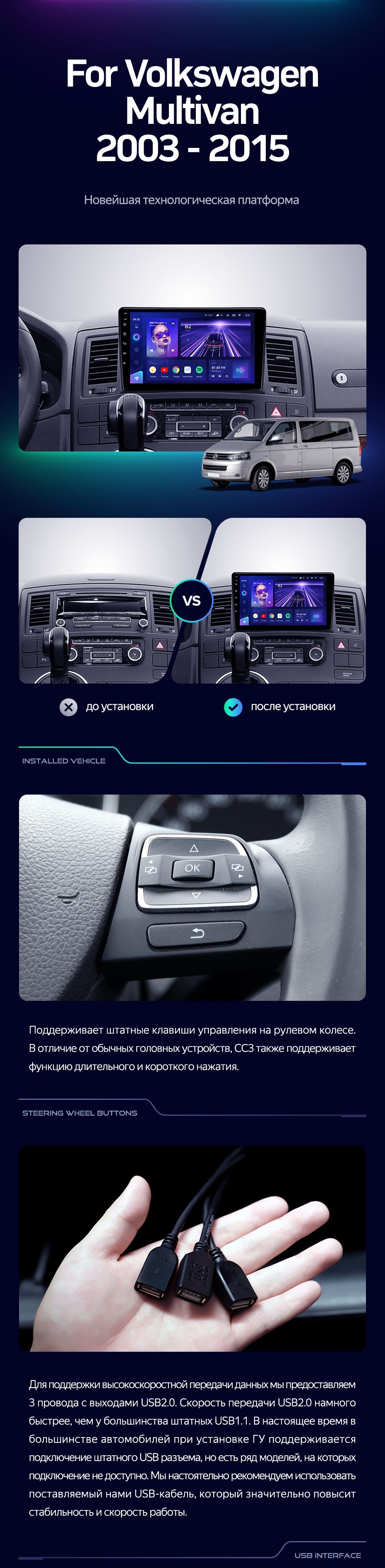 Штатная магнитола Teyes CC3 4/32 Volkswagen Multivan T5 (2003-2015) - купить всего за 33 220 руб. в интернет-магазине в Новокузнецке Teyes.com.ru. ✓ Самый лучший выбор мультимедиа ✓ Лучшая замена штатному ГУ ✓ Тел. +7 (800) 775-31-74