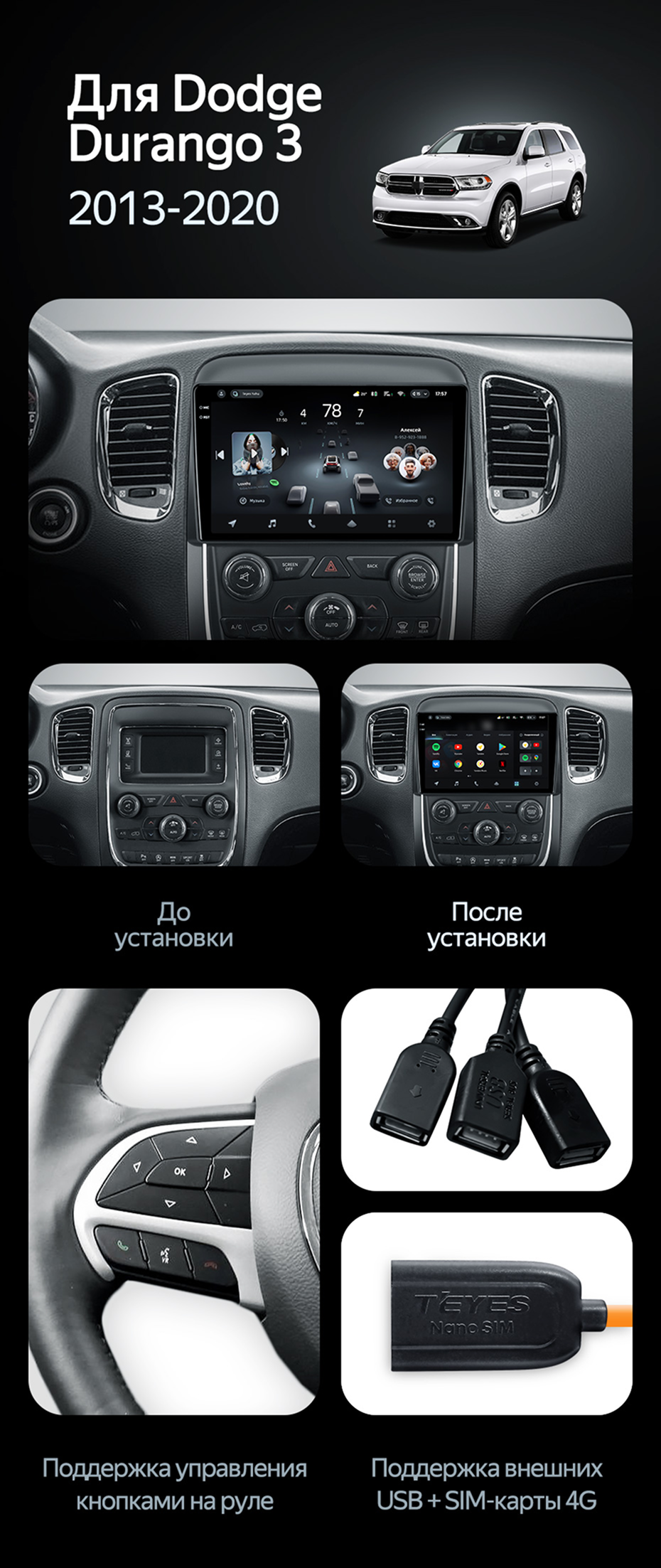 Штатная магнитола Teyes CC4 Pro 12/256 Dodge Durango 3 (2013-2020) - купить всего за 71 100 руб. в интернет-магазине в Новокузнецке Teyes.com.ru. ✓ Самый лучший выбор мультимедиа ✓ Лучшая замена штатному ГУ ✓ Тел. +7 (800) 775-31-74